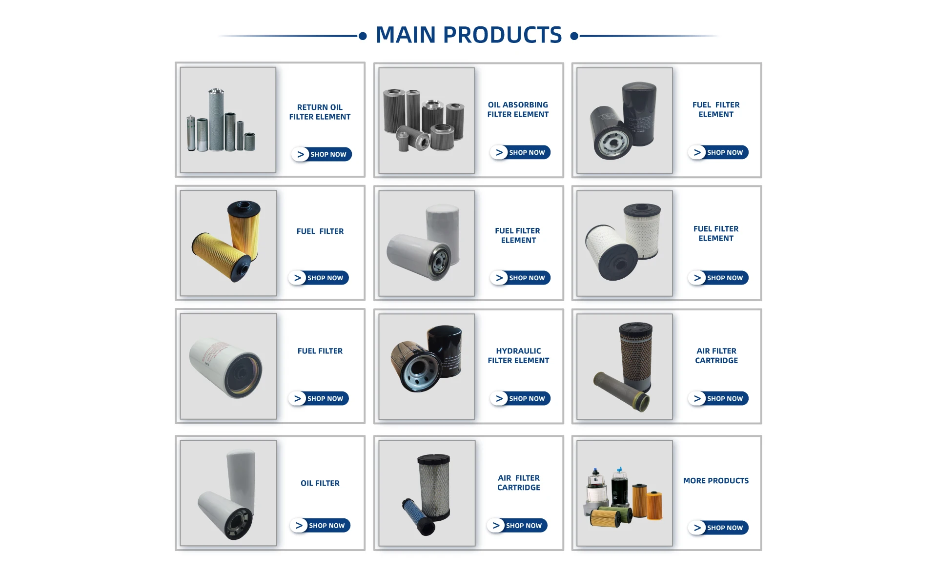 Sản Phẩm chính: Lọc dầu, Lọc nhiên liệu, lọc không khí, lọc tách nước dầu, lọc thủy lực